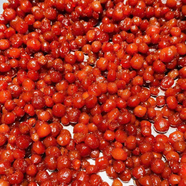 Chùm ruột sau khi được chọn lọc và làm sạch sẽ được sơ chế và rim cùng mật ong theo phương pháp truyền thống. Quy trình rim diễn ra chậm rãi, giúp chùm ruột ngấm đều vị mật ong mà vẫn giữ được độ dai, ngon tự nhiên. Sản phẩm cuối cùng là những viên chùm ruột căng tròn, màu vàng óng ánh, thơm lừng hương mật ong.