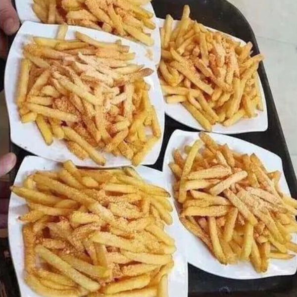 - Kích thước chuẩn: Khoai tây cắt dạng cọng dài, đồng đều, giúp món ăn có vẻ ngoài bắt mắt và hấp dẫn hơn khi trình bày.