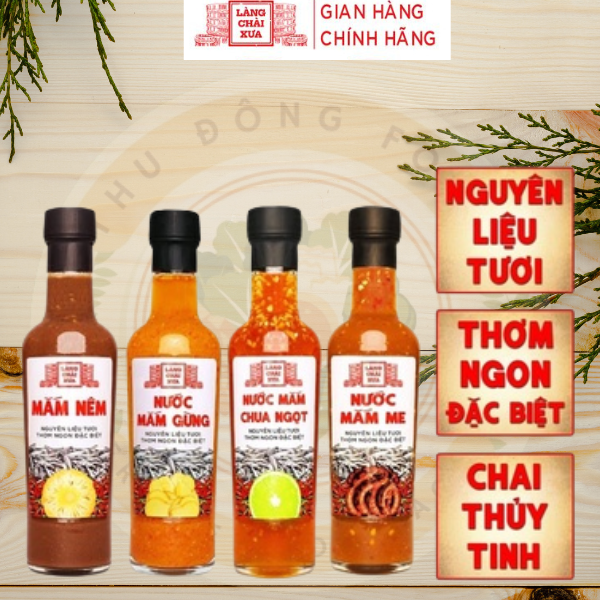 - Tên sản phẩm: Combo 4 Chai Nước Chấm Pha Sẵn (Mắm Nêm, Nước Mắm Chua Ngọt, Nước Mắm Gừng, Nước Mắm Me) 300g - Làng Chài Xưa