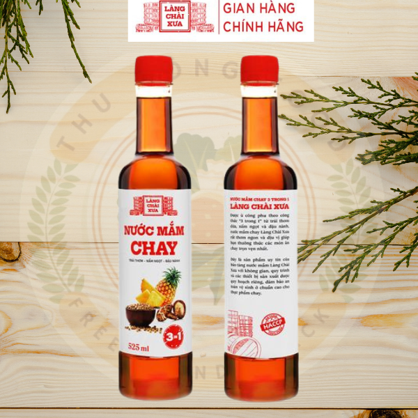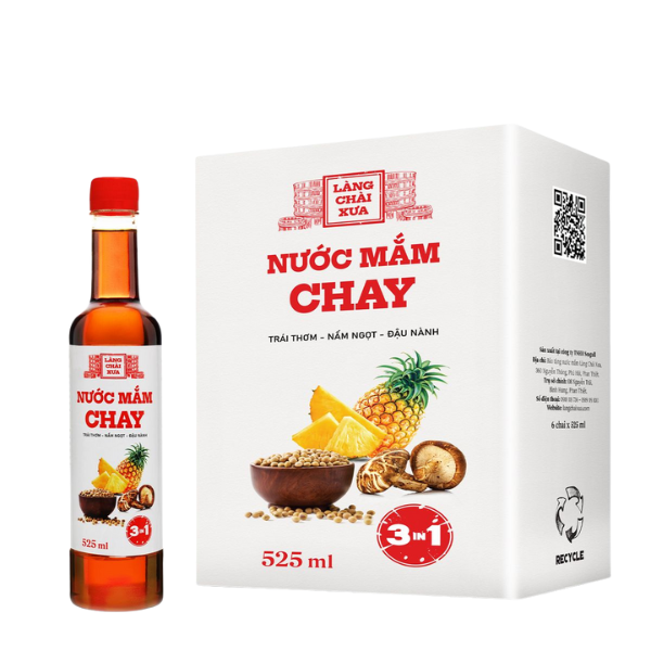- Nước Mắm Chay 3 Trong 1 Làng Chài Xưa 525ml, sản phẩm được làm từ các nguyên liệu hoàn toàn tự nhiên như nấm ngọt, đậu nành, nước cốt thơm dứa, muối tinh khiết, và đường phèn tự nhiên. Từng nguyên liệu được lựa chọn kỹ lưỡng và kết hợp theo một công thức độc đáo, tạo nên một hương vị rất ngon, thanh khiết nhưng vẫn đậm đà.