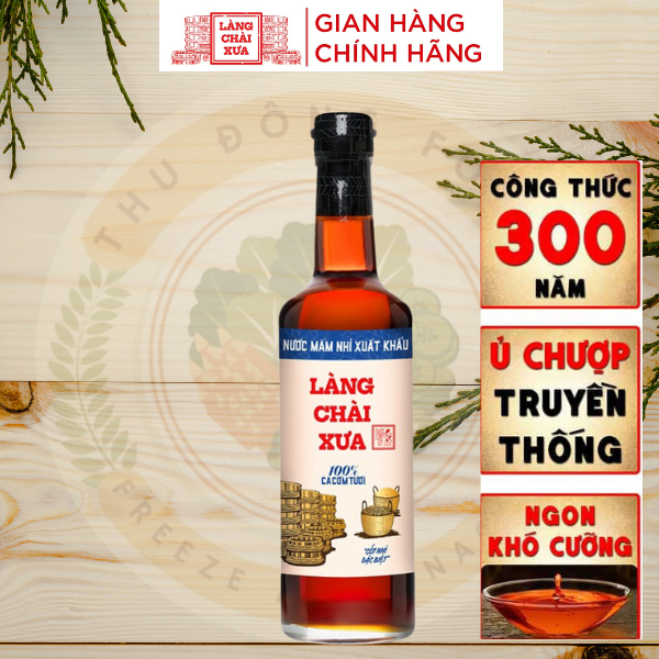 Nước Mắm Nhỉ Xuất Khẩu Nhãn Xanh của Làng Chài Xưa là sản phẩm mang đậm hương vị truyền thống Việt Nam, được ủ chượp trong thùng gỗ từ 100% cá cơm tươi và muối tinh khiết. Đây là loại nước mắm cốt nhỉ đặc biệt, mang đến vị dịu nhẹ, hậu ngọt, ít mặn và rất phù hợp với khẩu vị của Việt Kiều và giới trẻ thành thị.
