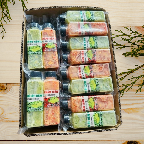 - Muối ớt xiêm xanh: Muối biển, ớt xiêm xanh, tỏi, chanh, đường, các gia vị tự nhiên.