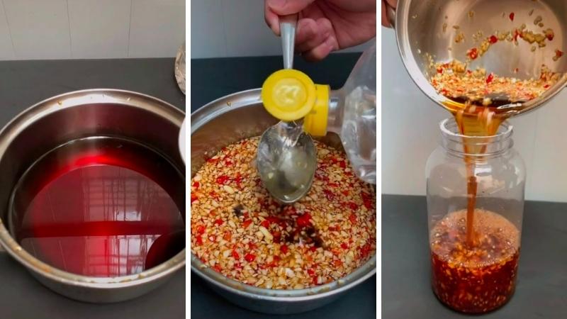 3.Thưởng thức: Cho thêm tỏi phi vào để tăng thêm hương vị (nếu thích). Để nước mắm nguội hẳn rồi cho vào hũ thủy tinh, đậy kín nắp và bảo quản trong tủ lạnh.