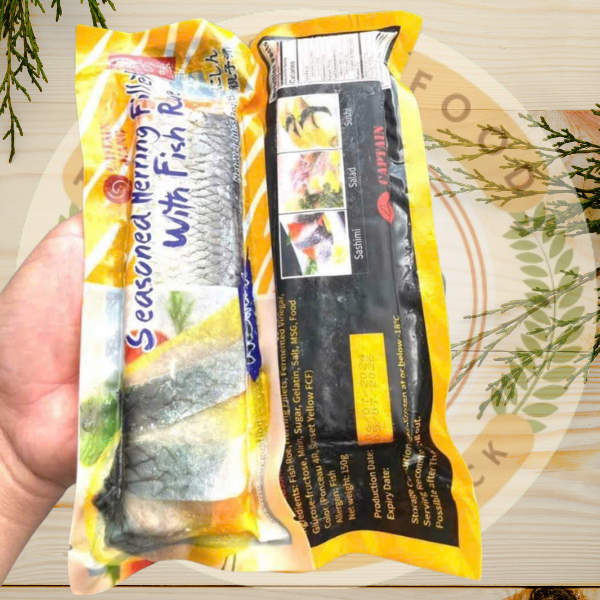 - Thành phần: Sản phẩm được làm từ cá trích phi lê ngâm giấm, kết hợp với trứng cá chuồn, tạo nên hương vị hoàn hảo, hấp dẫn.