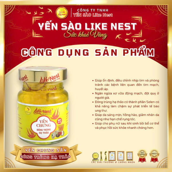 - Tăng cường sức đề kháng: Nhờ sự kết hợp giữa yến sào và đông trùng hạ thảo, sản phẩm giúp cơ thể chống lại bệnh tật, cải thiện hệ miễn dịch.