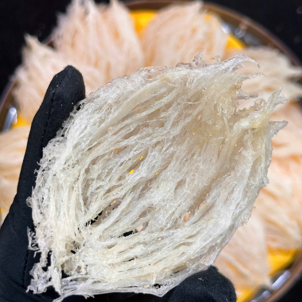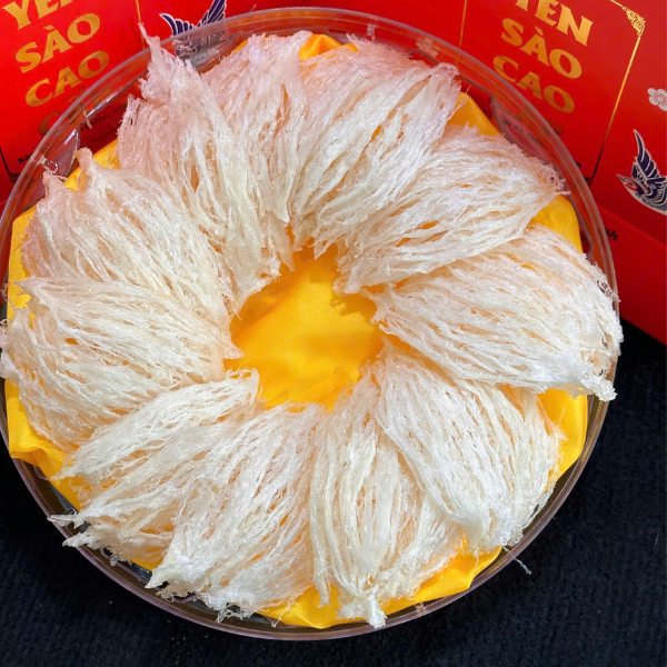 - Sợi yến dài, nguyên chất: Sản phẩm có đặc điểm là các sợi yến dài, mềm mịn, không bị vụn nát, mang lại trải nghiệm vị giác tuyệt vời khi chế biến.