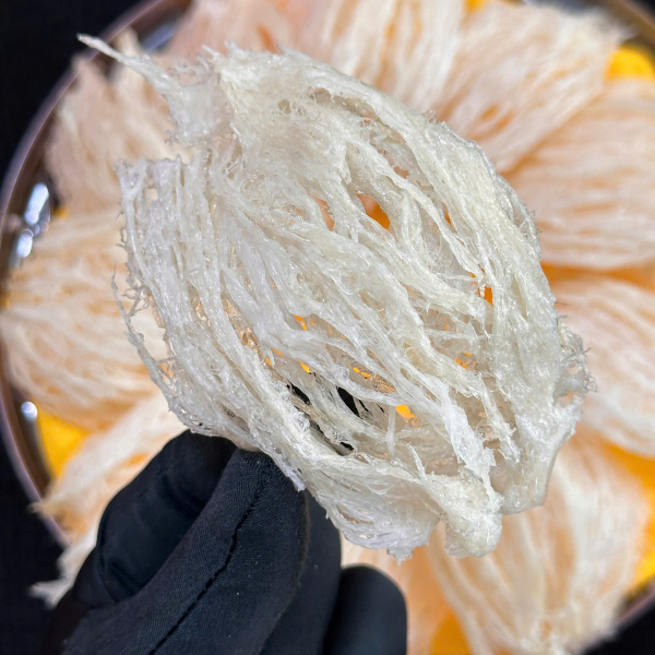 - Tinh chế tỉ mỉ: Tổ yến được làm sạch thủ công, loại bỏ tạp chất nhưng vẫn giữ nguyên cấu trúc sợi yến, giúp sản phẩm không mất đi giá trị dinh dưỡng.